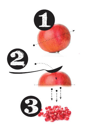 Para extraer fácilmente los granos de su interior se corta la granada en 2 mitades y se golpea la corteza con una cuchara.